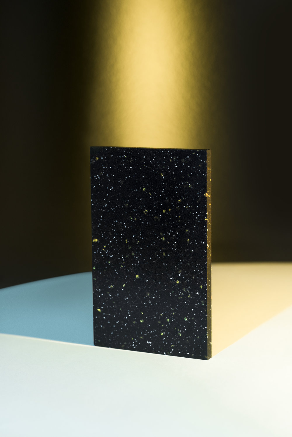 The design of the Durat® Palace collection is characterized by its playful yet sophisticated use of color and pattern. The terrazzo effect is achieved by embedding colorful recycled plastic speckles into a solid-colored base, resulting in a visually textured and dynamic surface. The collection initially launched with a dozen distinct colorways, offering a broad palette for architects and designers.
